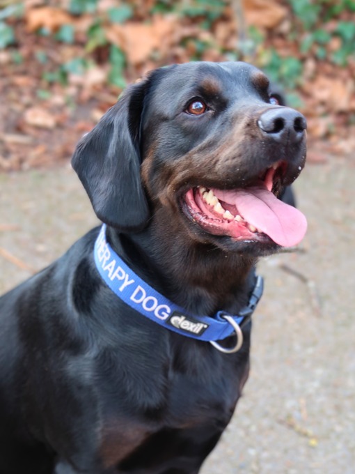 He is an exceptionally friendly dog, and on the days he is in school, follows his own timetable, supports anxious students and is involved in various activities.