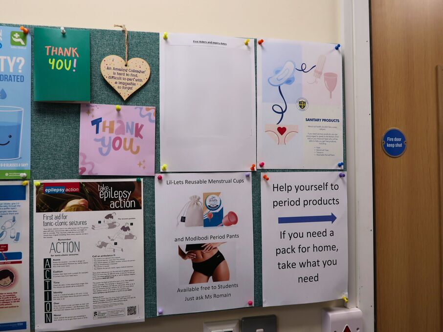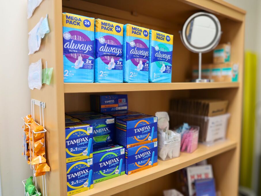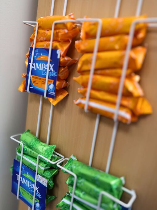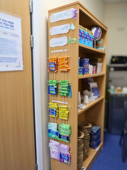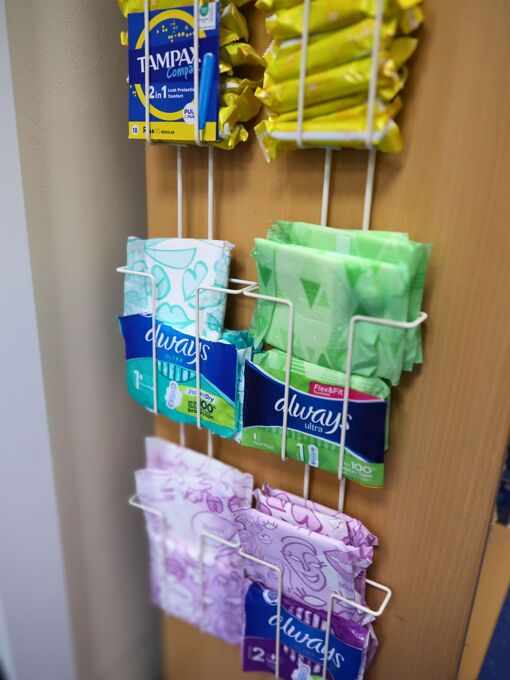 Free sanitary products are available from the Medical Room (now located in the Warrior Suite), the ACE Room, and the Pastoral and Welfare Office.